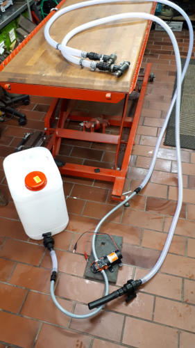 Gerät zum Wechsel der Heizungsflüssigkeit und andere Heizkreispumpe welche absolut geräuschlos arbeitet. Die Fittinge wurden passend für die Schläuche abgedreht.