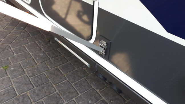 Im Rahmen der Markisen- Montage habe ich Halter angefertigt, welche die Stützen im Bedarfsfall am Wohnmobil aufnehmen können. Die Halter werden mit PU-Kleber aufgeklebt. Die kleinen originalen Plastikhalter oder Saugfüße waren keine Option.